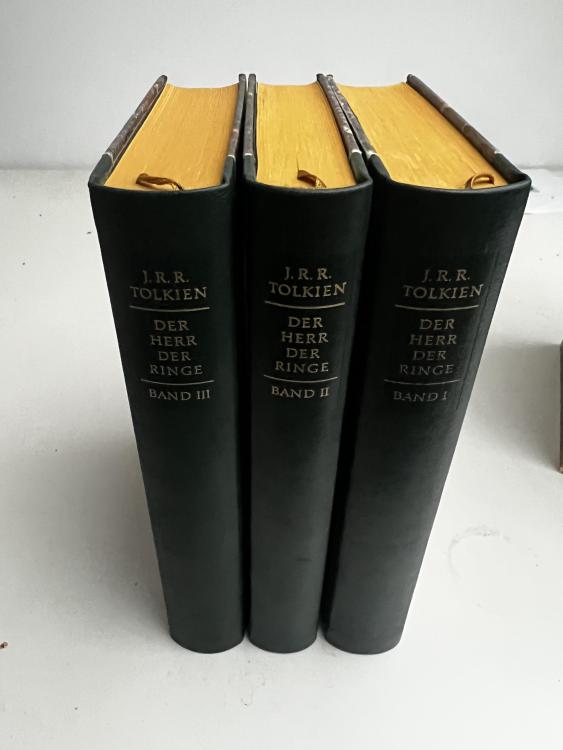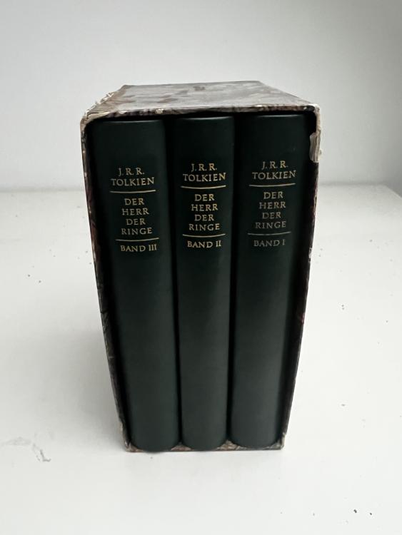 6. Hallo zusammen, ich wüsste nicht wo und wie ich ein neues Thema bezüglich meiner Anfrage eröffnen sollte deshalb versuche ich es hier, weils halbwegs zum Thema passt 😉 Ich glaube ich besitze die die Bücher „Der Herr der Ringe“ in deutscher Erstausgabe von 1969. Das Cover ist etwas Pychodelisch, grüner Buchrücken, die Seiten oben sind vergoldet. Es gibt einen goldenen Einband und die Bücher weisen keine größeren Gebrauchsspuren auf. Wenn ich wüsste wie man hier Bilder einfügt würde ich es tun 😬 Es ist schwierig im Internet eine Wertorientierung zu finden, da es kaum Angebote gibt. Kein Wunder, wenn es DIE Bücher sind, gibt es nur 300 Exemplare. Könnt ihr mir bei der Wertfindung helfen, und vielleicht gibt es sogar Interessenten? Danke und lieben Gruß Daniel