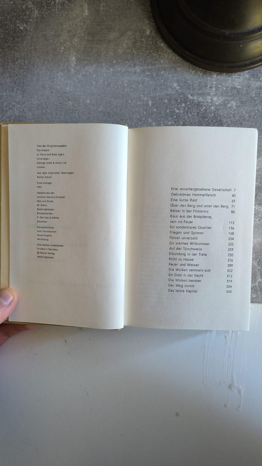 4. Ahoi! Ich möchte diese Originalausgabe verkaufen, bzw auch erstmal den Wert ermitteln. Der Hobbit / 1957/ Übersetzunge von Walter Schret/ Illustration: Horus Engelz Originalausgabe : The Hobbit or there and back again