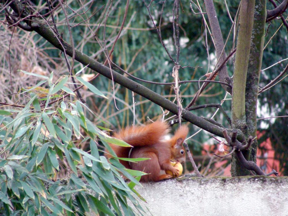Erstens wollte ich mal einfach so erzählen, dass ich jetzt auf den Fotos mindestens drei verschiedene Igel identifiziert habe. Kein Wunder dass das Futter IMMER aufgefressen wird (auserlas besonders teure, von Igelstationen empfohlene. Da sind Insekten drin, um dies sie regelrecht herumfressen). Und zweitens hab ich auch mal wieder ein altes Eichhorn-Bild gefunden (als ich danach gesucht habe, waren alle weg. Jetzt wo ich nach anderen Sachen schaue finde ich sie wieder. Ist klar, oder?)1 Punkt