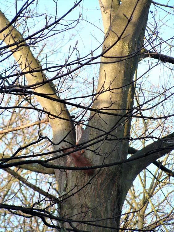 Heute möchte ich euch an meinem wunderschönen Erlebnis teilhaben lassen, das ich gerade eben hatte. Vier Junghörnchen haben eben ganz wild in einem Baum auf dem benachbarten Grundstück herumgetollt. Das ging immer rund um den Baumstamm herum, hinauf in die Krone und wieder zurück. Natürlich hatte ich zuerst meine Kamera nicht parat, und dann hat leider der Autofocus meiner Kamera immer die Zweige scharf gestellt.1 Punkt