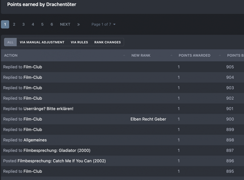neee im Punkte-Log sind nur Antworten und Posts drin: