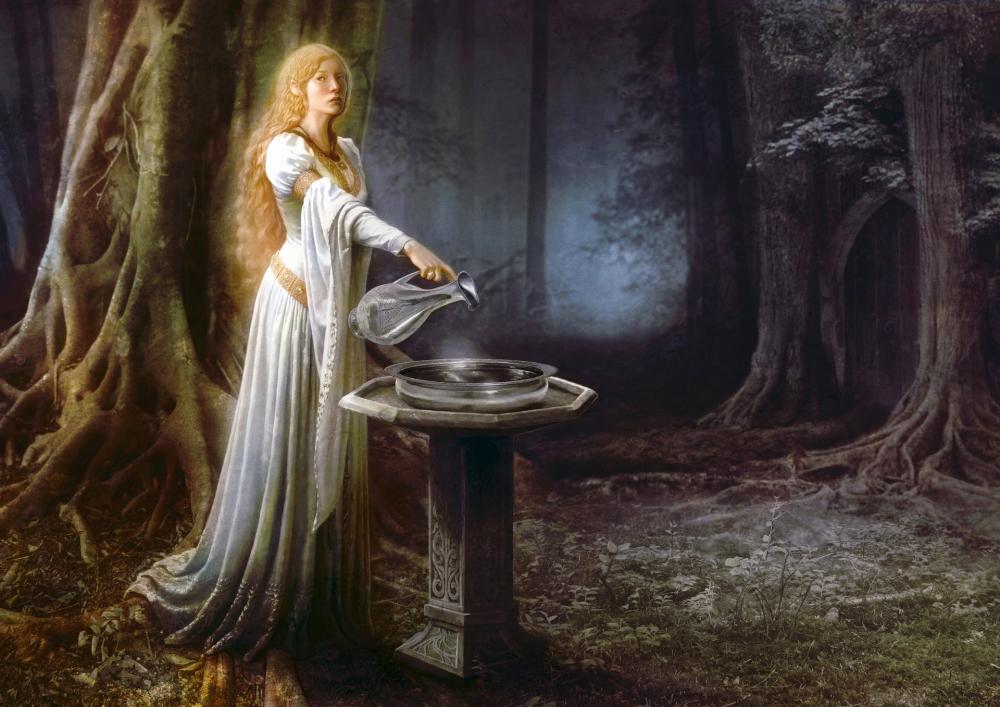 Ich finde, dem Maler ist es perfekt gelungen, die Magie dieser Szene an Galadriels Spiegel darzustellen, und auch ihre Augen, die von hohem Weisheit und Alter künden, sind dem Maler perfekt gelungen.