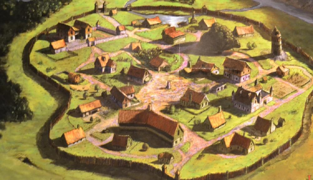 6. Kapitel 2: Blasingdell Die Reise auf der einfachen Straße nordwärts war lang, aber unbeschwerlich und ohne Zwischenfälle. Am frühen Abend im Sonnenuntergang erreicht ihr die kleine Minenstadt Blasingdell, die im Schatten der Ausläufer des Grates der Welt liegt an einem kleinen Fluß auf einer großen Lichtung des umgebenden Waldes. Ihr erreicht die Stadt von Süden her. Am Tor stehen zwei Männer in einfaches Leder und Leinen gekleidet, auf ihre Speere gestützt und unterhalten sich. Als sie euch bemerken, wenden sie sich an euch, mit in eure Richtung leicht gesenkten Speeren. Der Ältere fragt: "So spät noch unterwegs?"